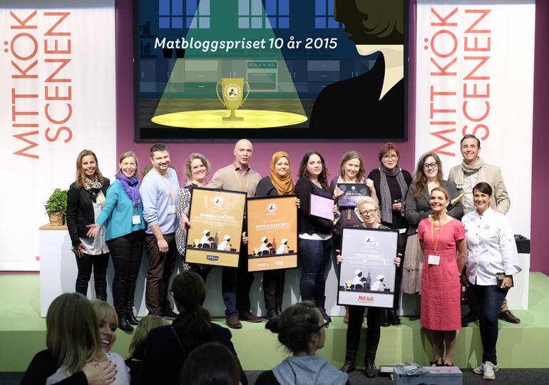 Ja, det är ju jag det! Jag står där lite lätt förvirrad och superglad i mitten. Jag vann! Det är en underlig känsla att bli bekräftad för något som man gör för sig själv. Jag bloggar för att få utlopp för min kreativitet, för att bakning är meditation och för att jag älskar att inspirera andra. Och att sedan vinna ett så här fin pris för det jag gör! Ja, det har inte riktigt sjunkit in än . Jag har normalt sett absolut ingen scenskräck, jag älskar att prata och föreläsa. Men jag fick helt blackout när jag stod där uppe för att prata om sig själv, det var viss något helt annat!