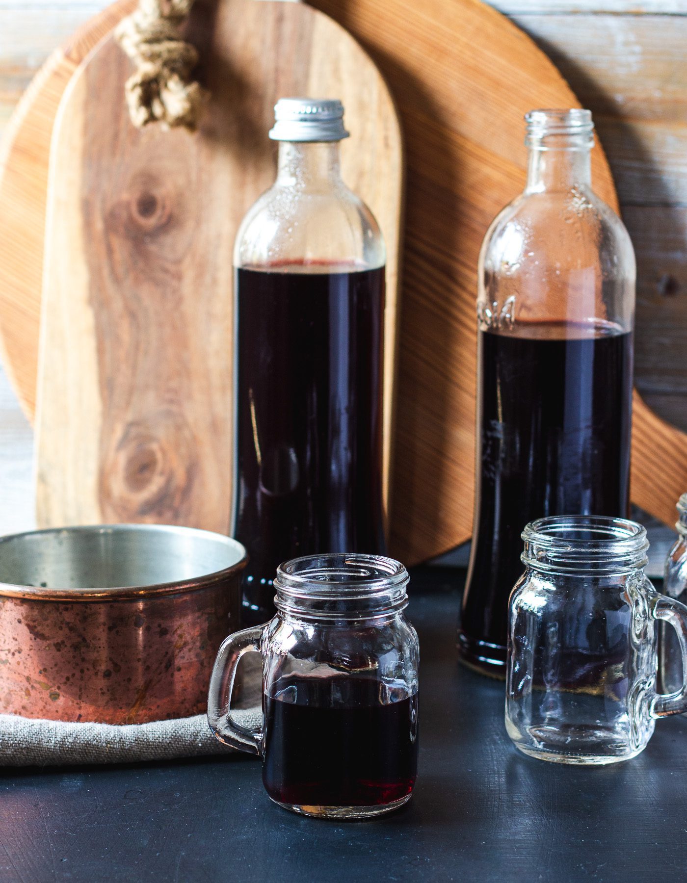 Tänk på att inte ta med fingrarna på insidan av flaskorna. Det bästa är att hålla dem med en riktigt stor grilltång som man också stoppat ner i kokande vatten i minst en minut. Samma sak gäller även tratten om du använder en sådan för att hälla upp glöggen.